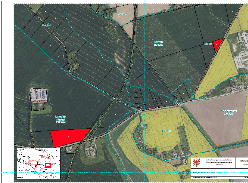 Die Darstellung der Texte aus WMS Diensten lässt sich leider nicht ändern. Die schlechte Qualität hängt am WMS Dienst und kann von uns nicht beeinflusst werden. Siehe dazu auch im LEFIS Bugzilla BUG6427 und BUG1660. Ich habe nun ein Shape der Flurübersicht Brandenburg aus dem geobrocker heruntergeladen, die Beschriftung angepasst und als Layer-Datei 'Fluruebersicht' unter E:\Allgemeine_Daten\01_DatenBrandenburg\Verwaltungsgrenzen\20240115 abgelegt. Ihr könnt hier gerne Änderungen vornehmen. Ein Druck der Arbeitskarte 'FM_Eigentuemer_AB_A3quer_20240115' sieht nun so aus -> siehe Anhang 'Karte_FluruebersichtAusShape' Gib mal Bescheid, ob dies eine brauchbare Alternative wäre.